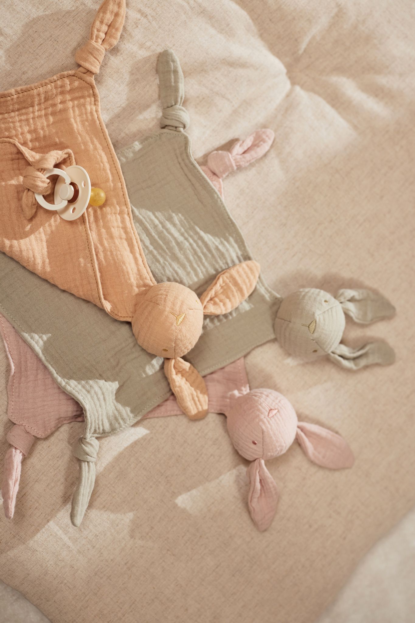– Attache-tétine en gaze de coton doux, à la texture agréable pour bébé