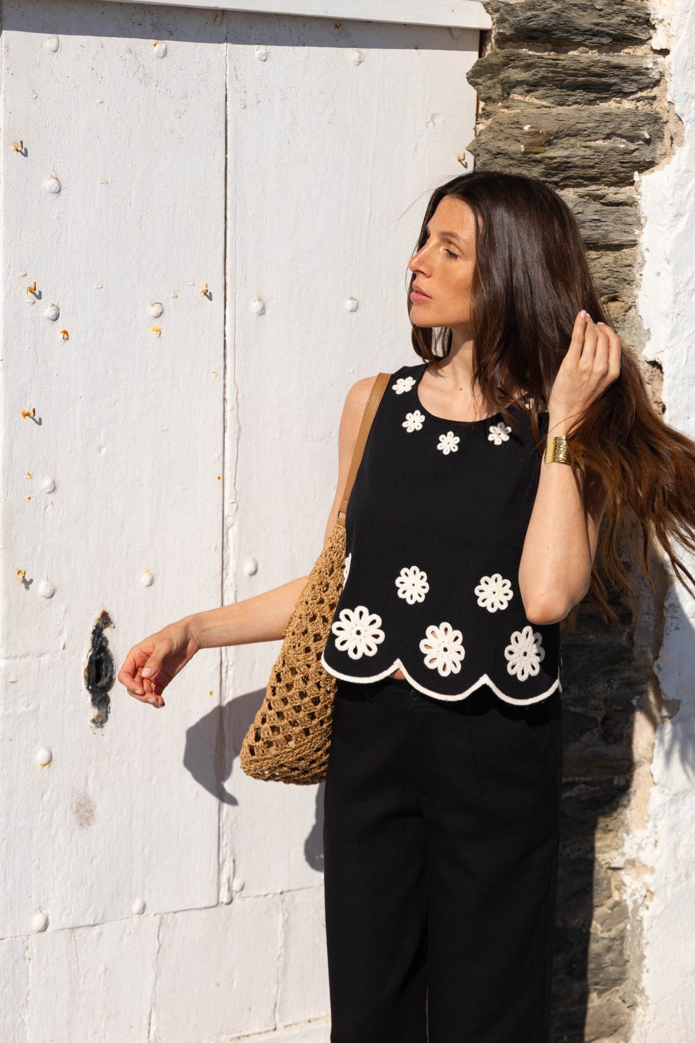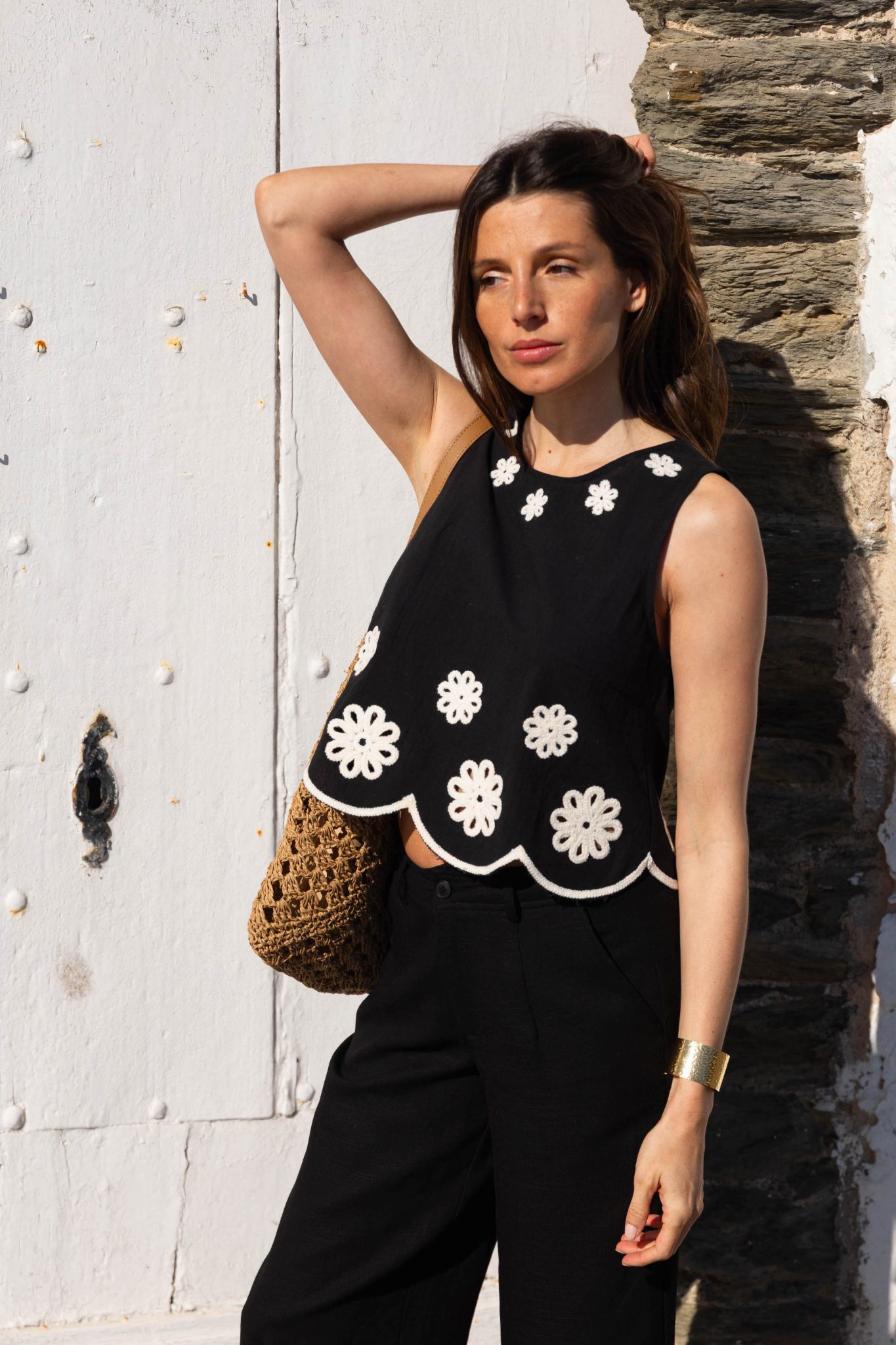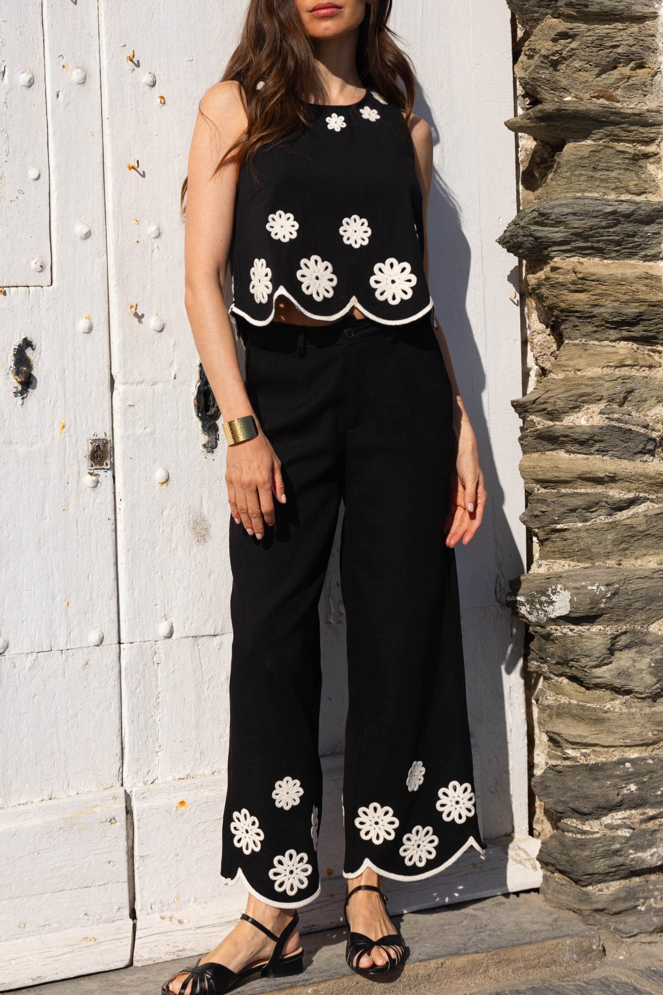 – Broderies fleuries contrastantes blanches