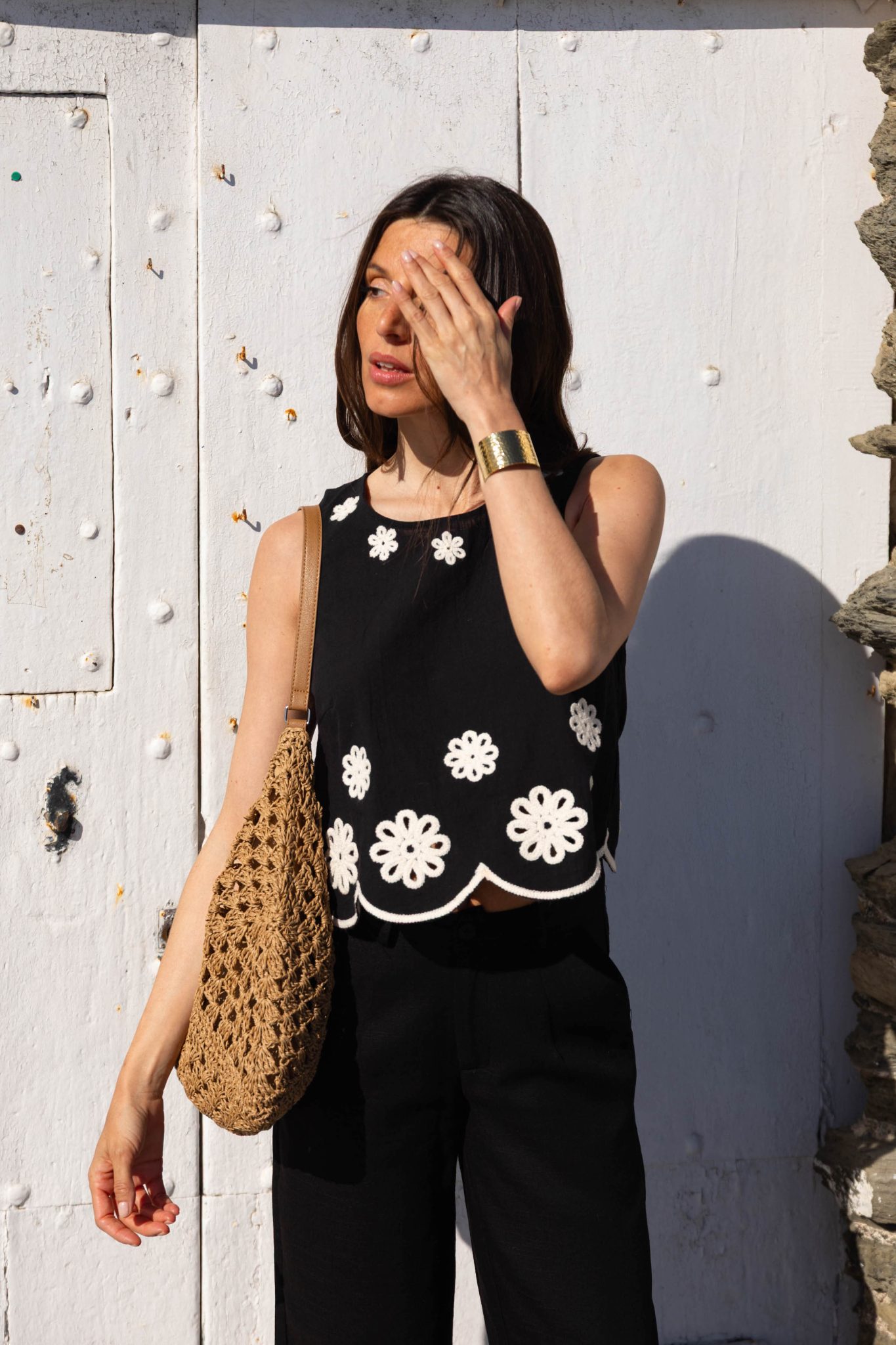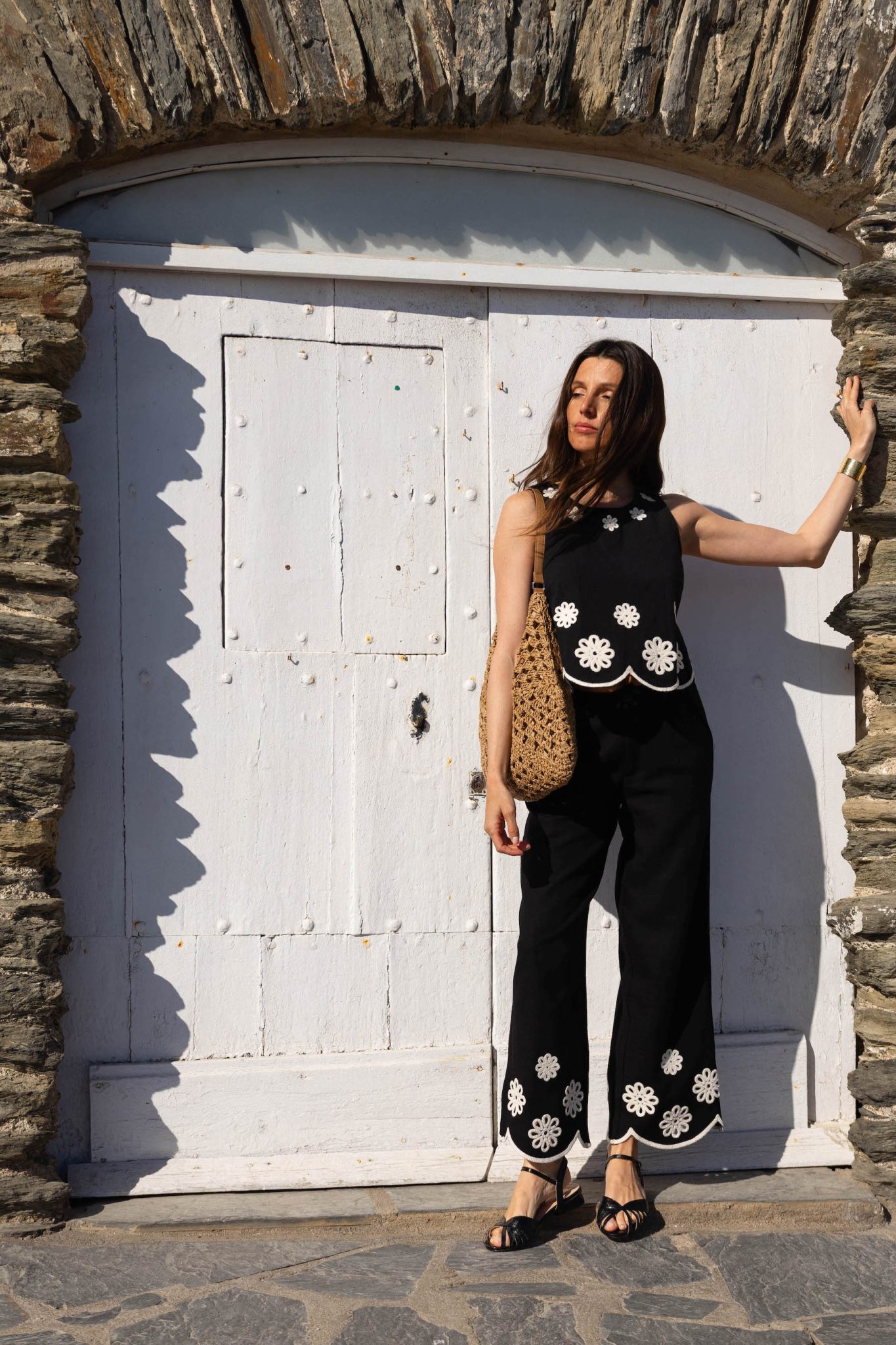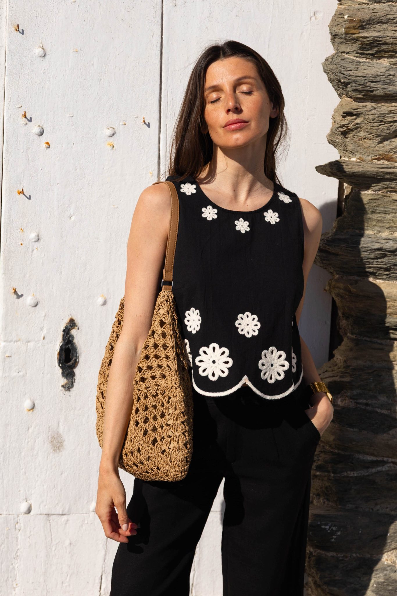 – Broderies fleuries contrastantes blanches