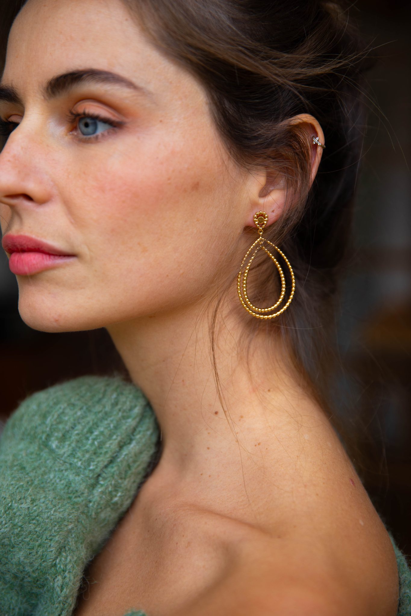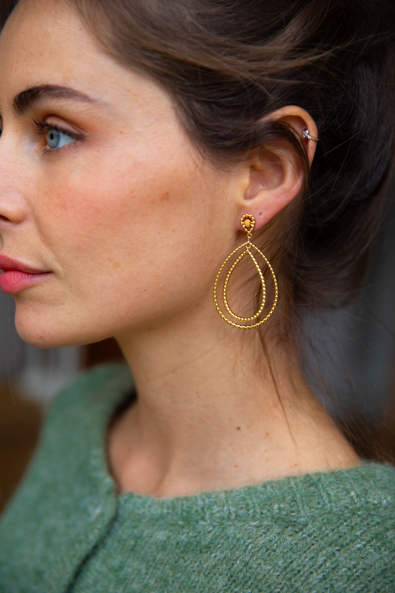 – Boucles d’oreilles pendantes doubles ovales
