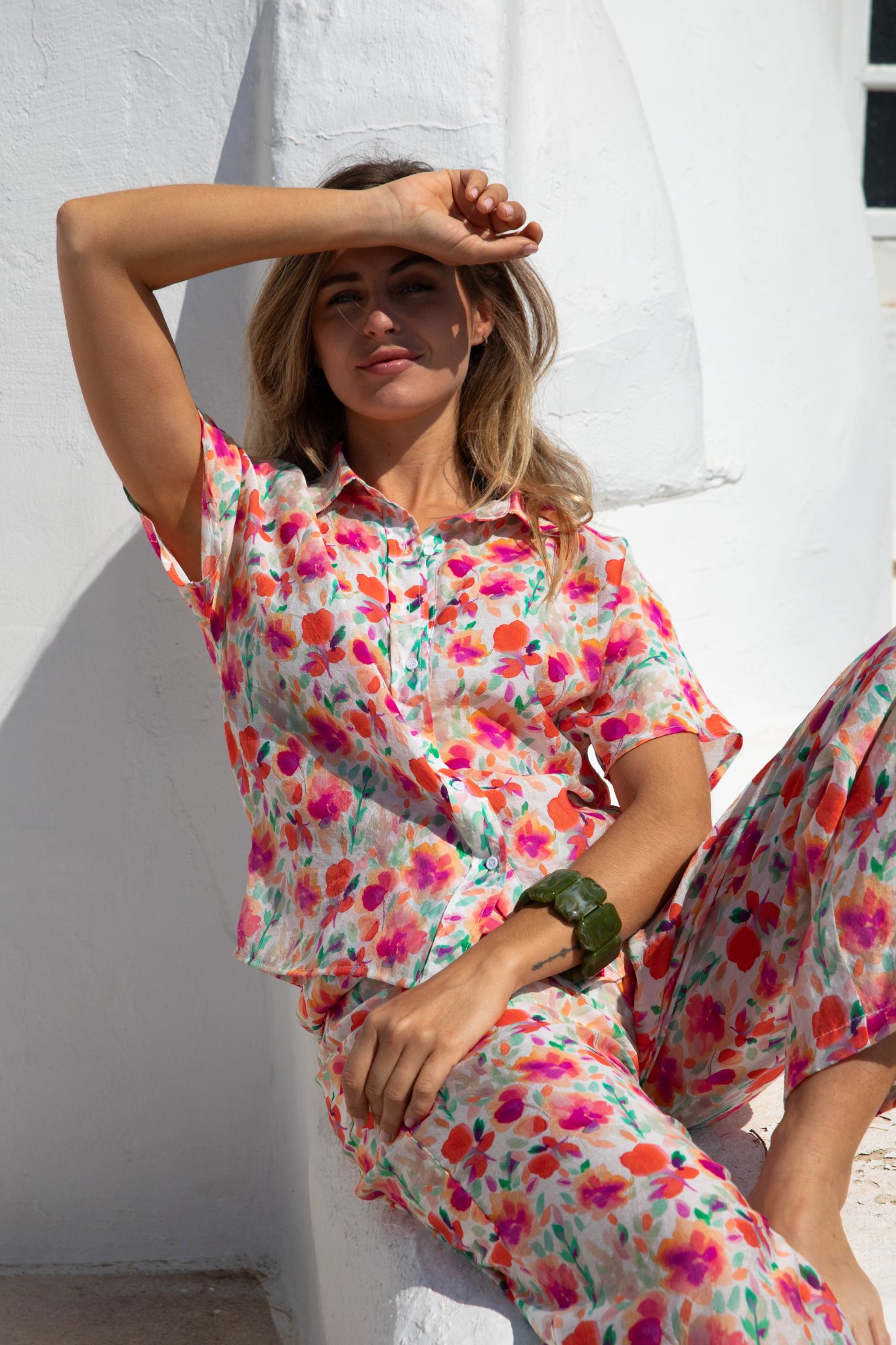 – Couleur : fond blanc, imprimé fleuri