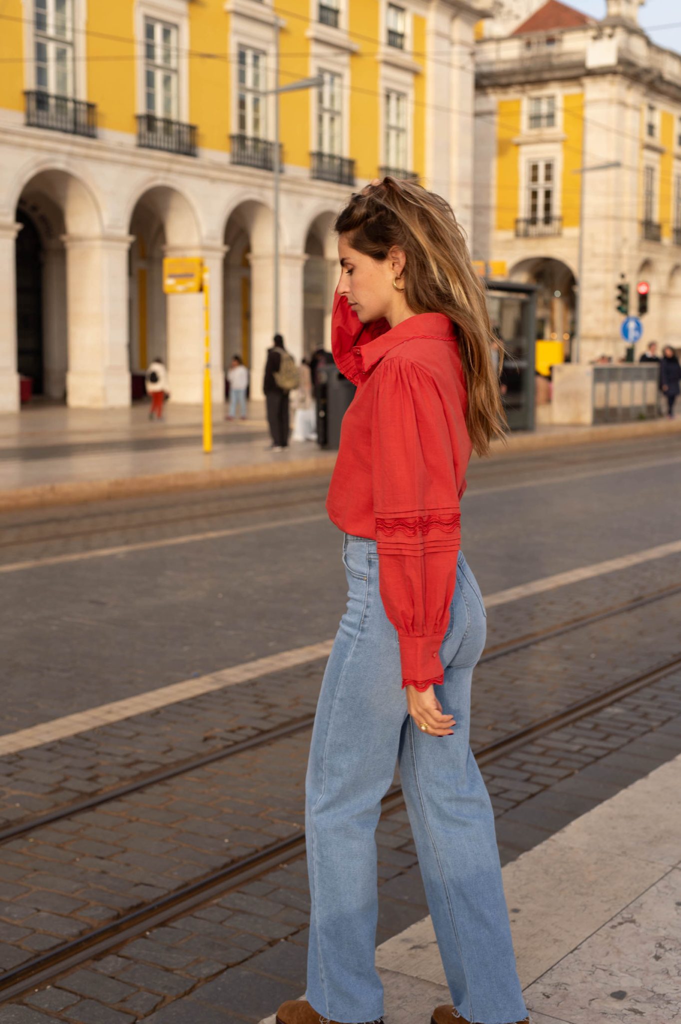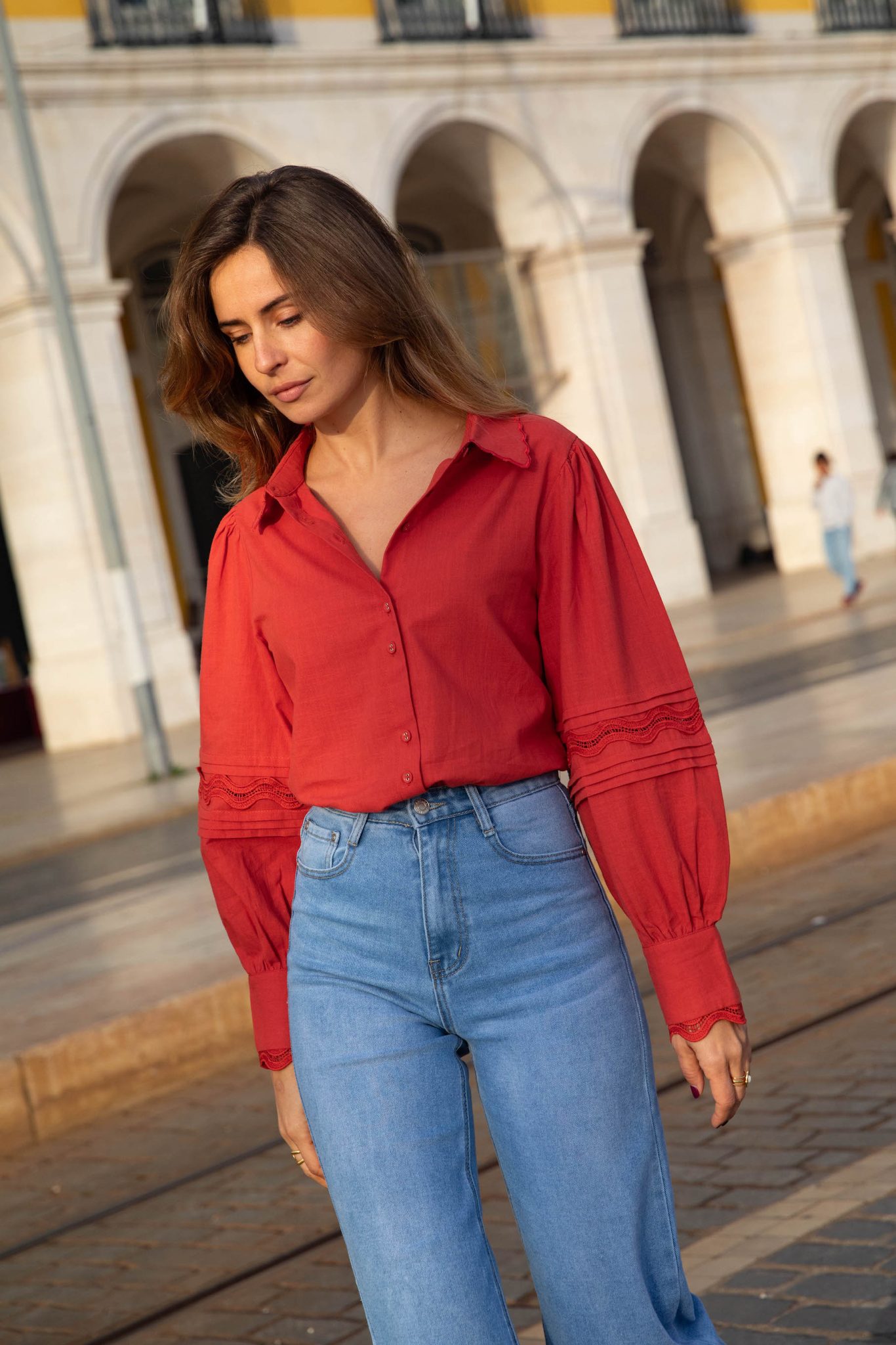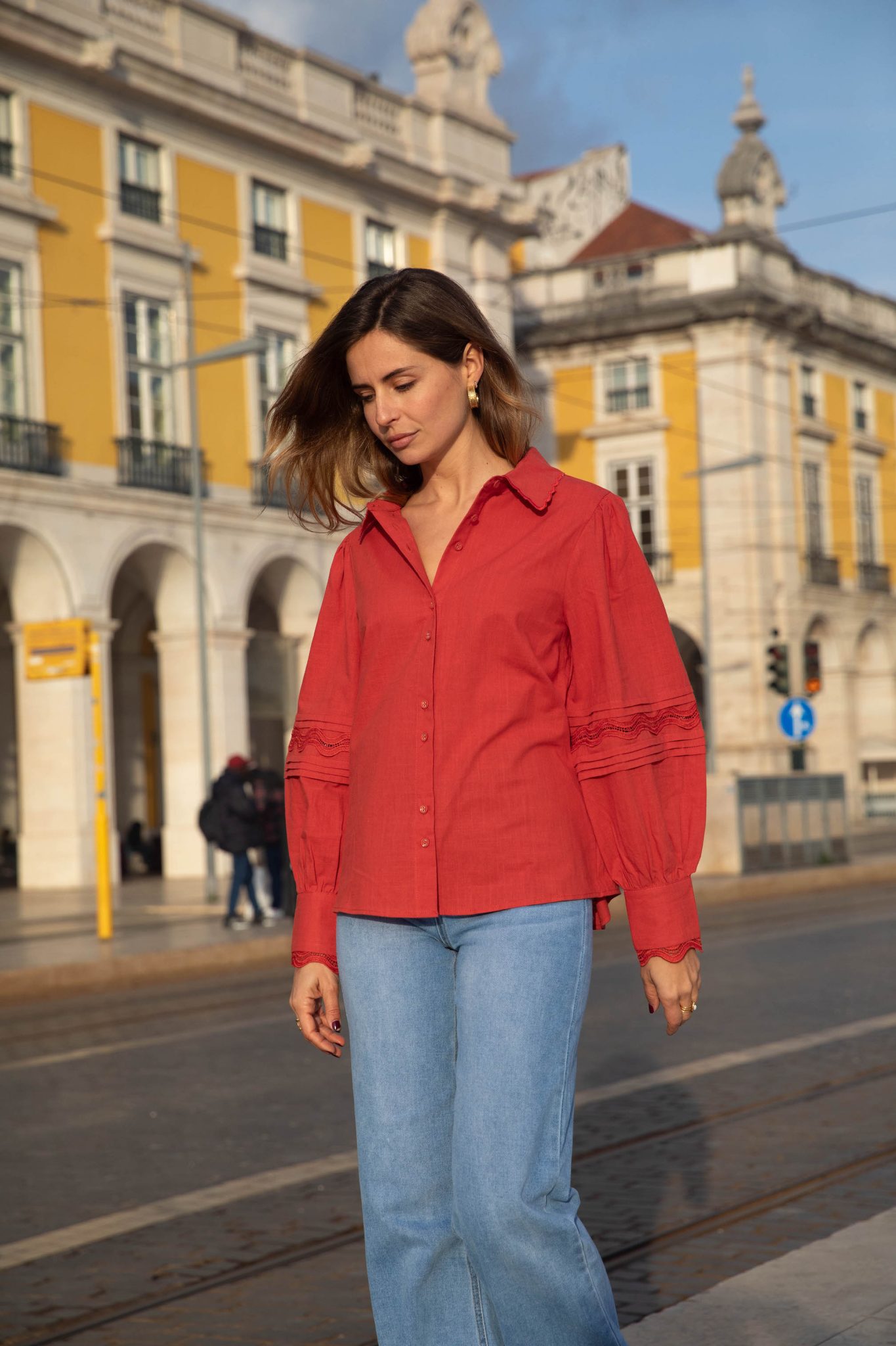 – Manches longues bouffantes resserrées aux poignets par un bouton