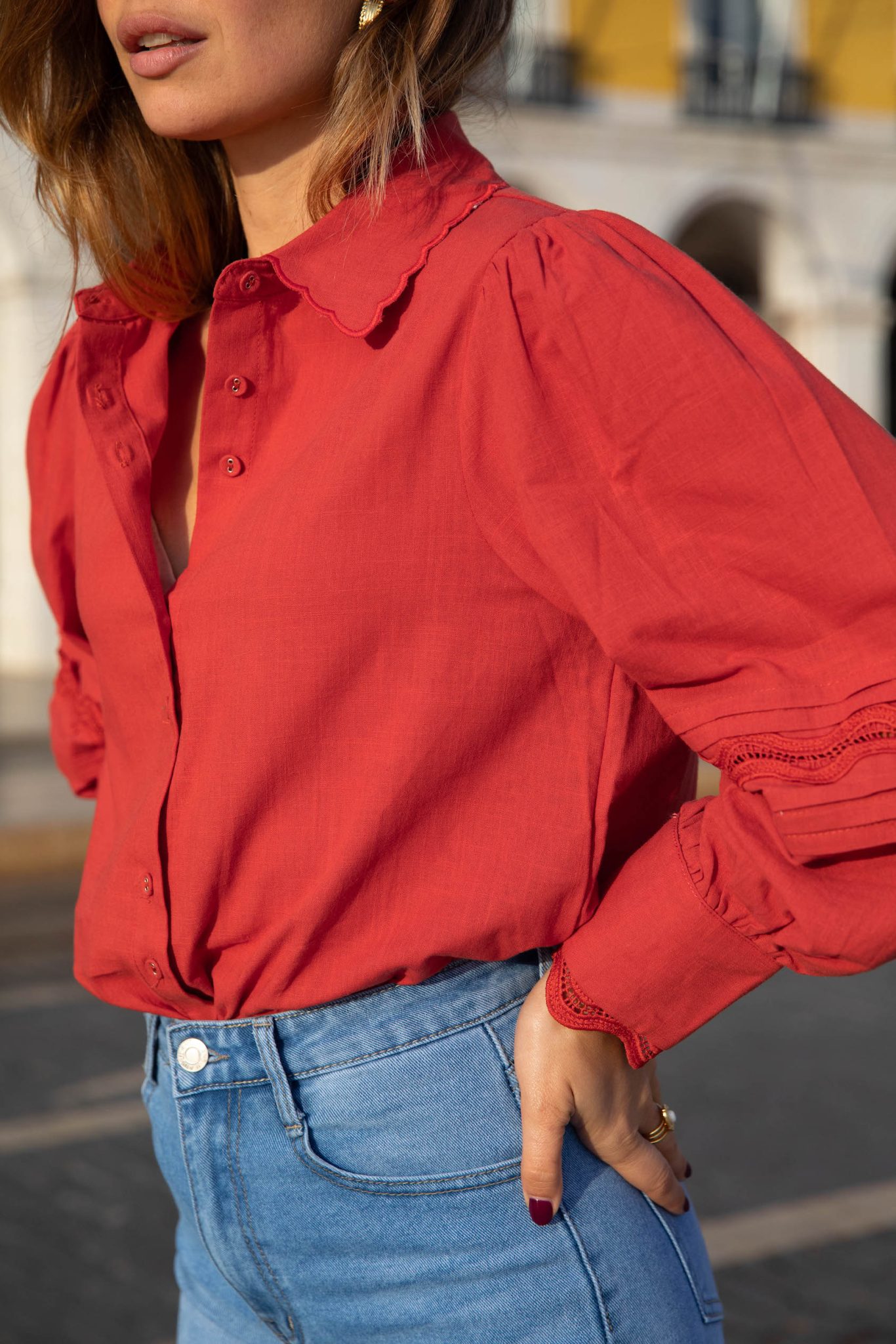 – Chemise à col dentelé