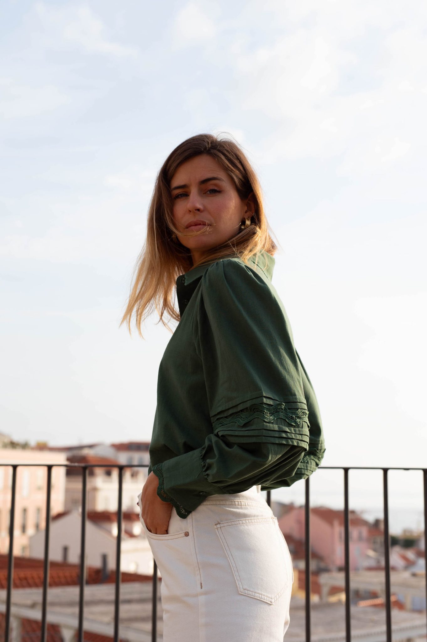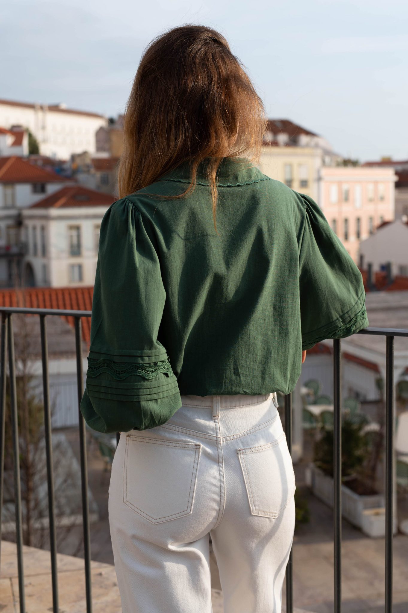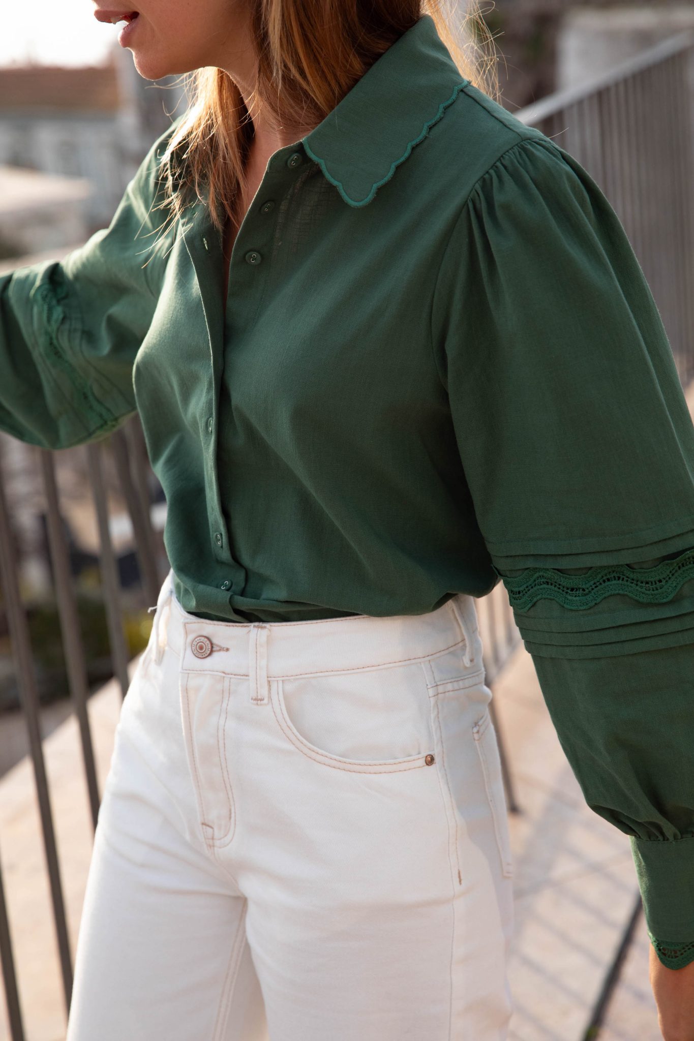 – Manches longues bouffantes resserrées aux poignets par un bouton