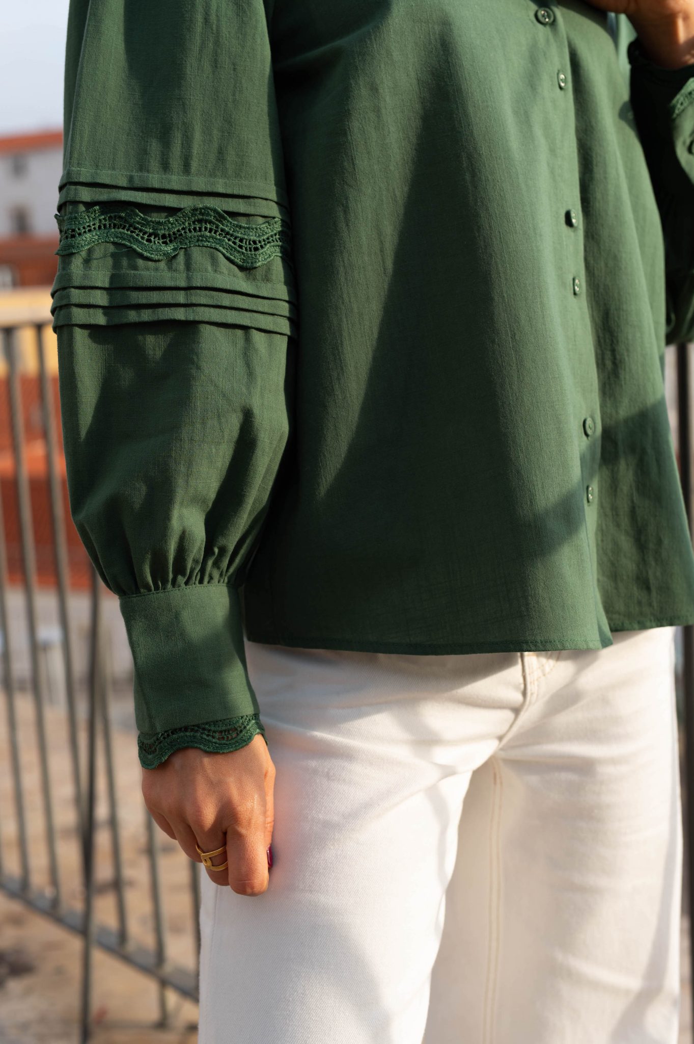 – Détail de dentelle ton sur ton aux manches