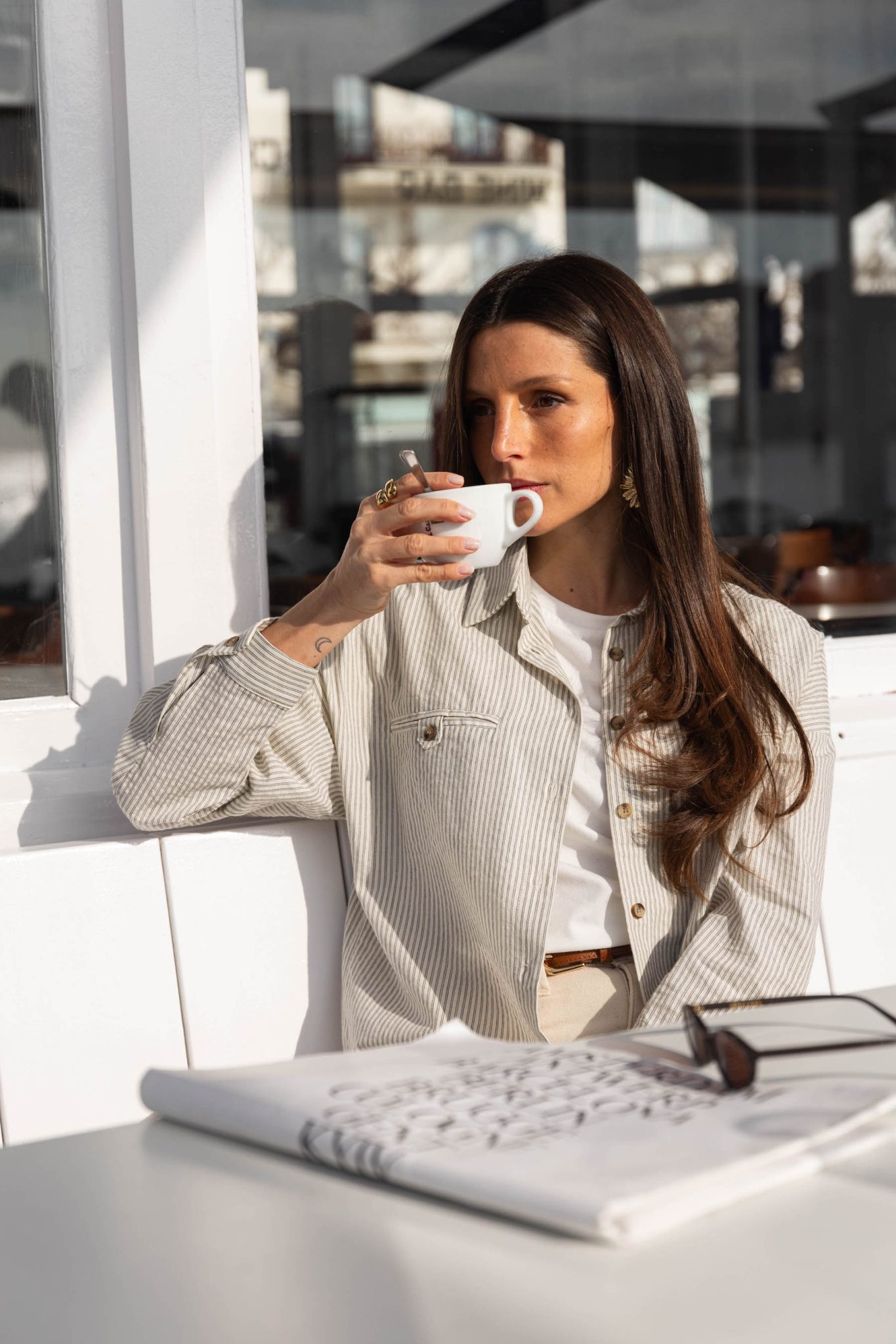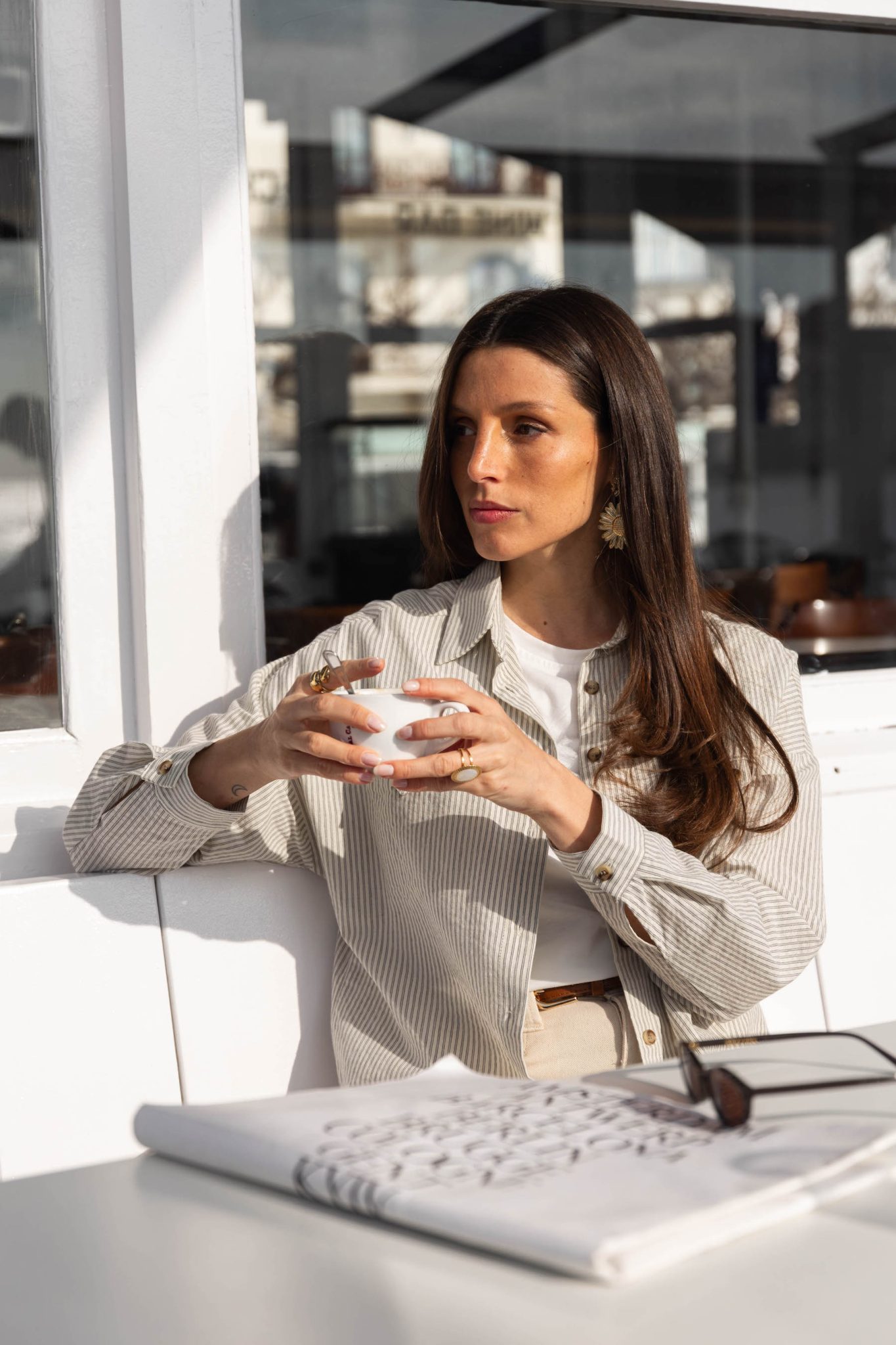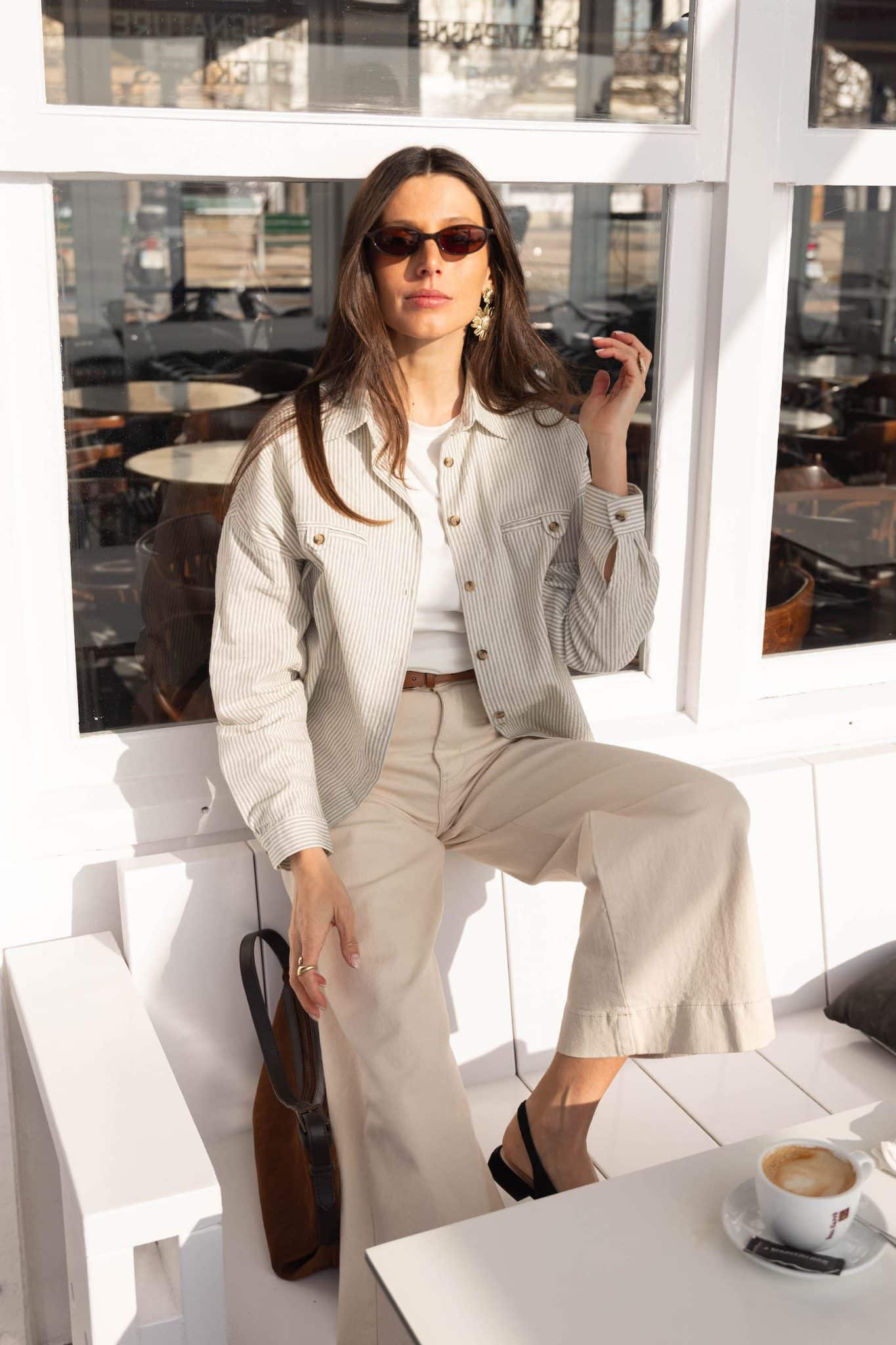 – Couleur : rayé écru et gris