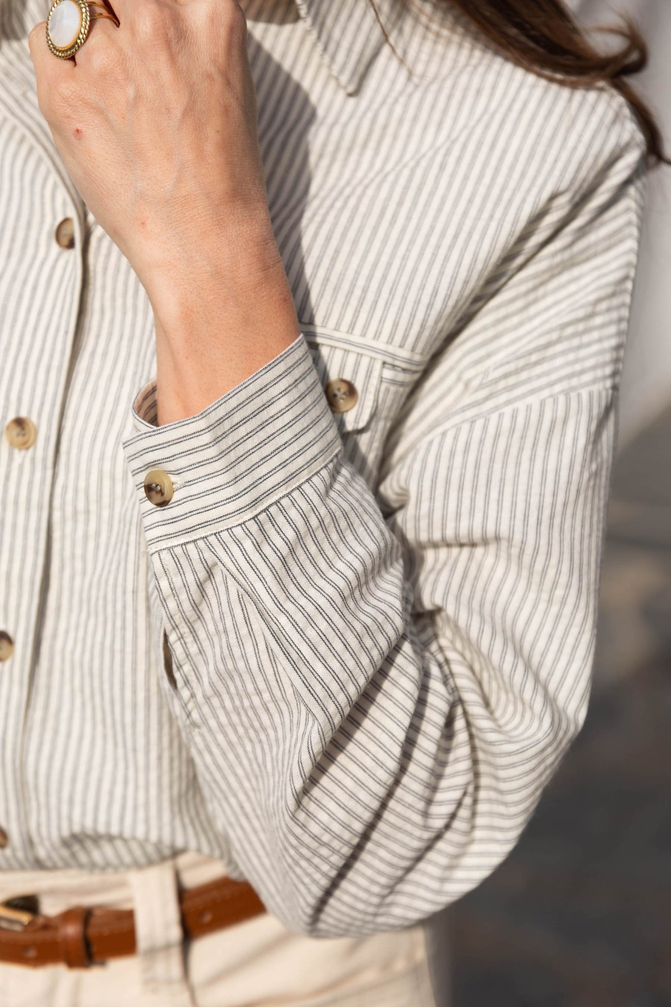 – Manches longues resserrées aux poignets par un bouton