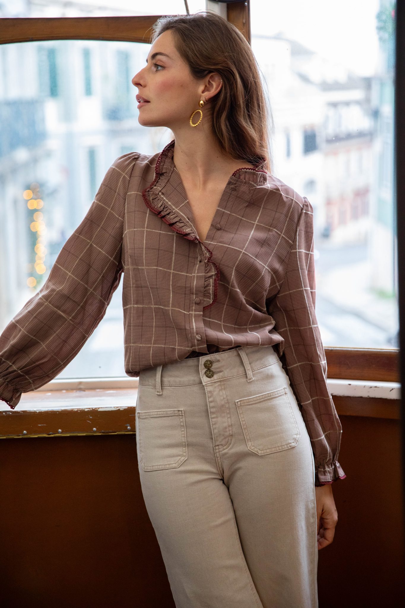 – Chemise col montant à volant