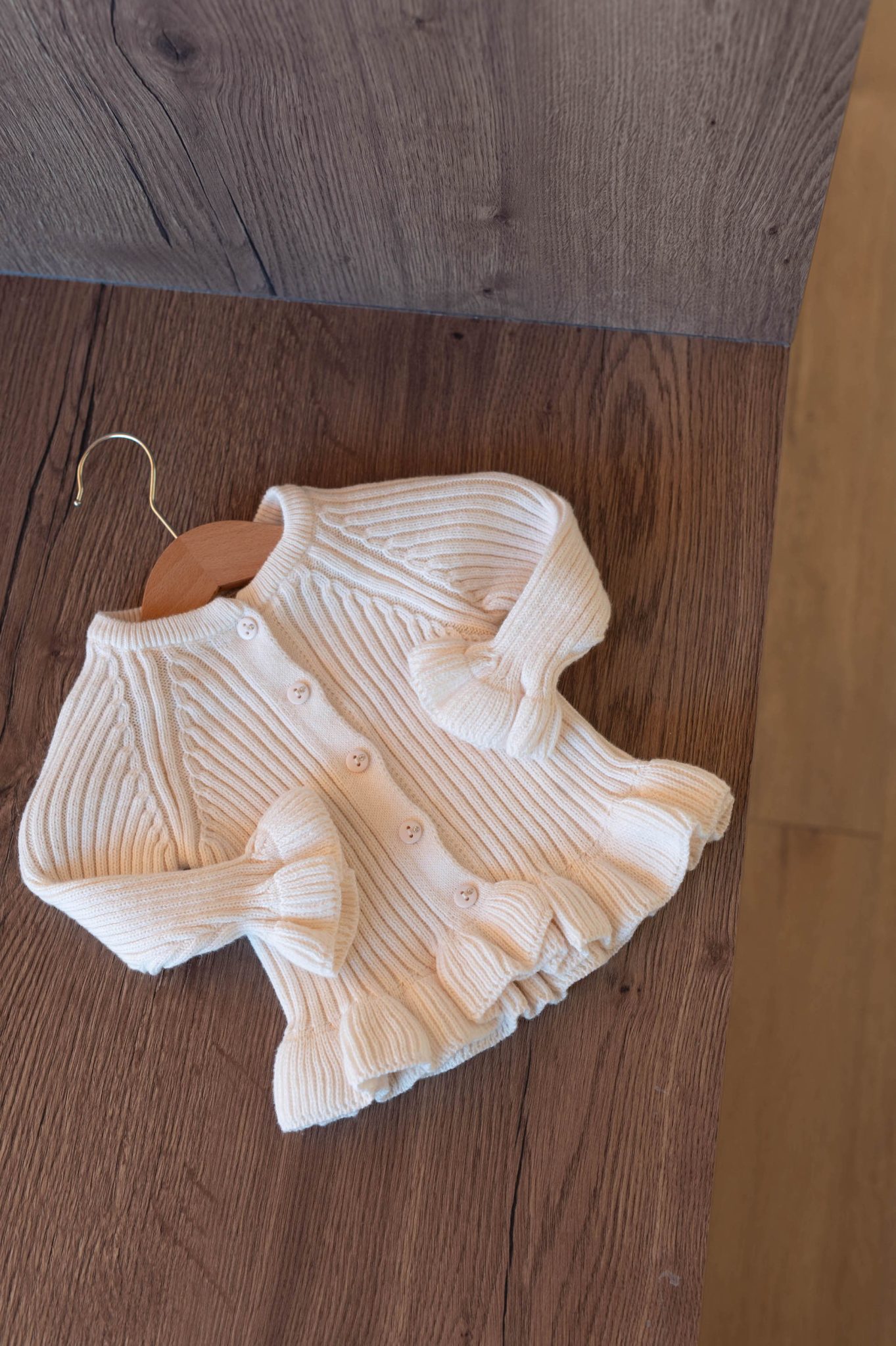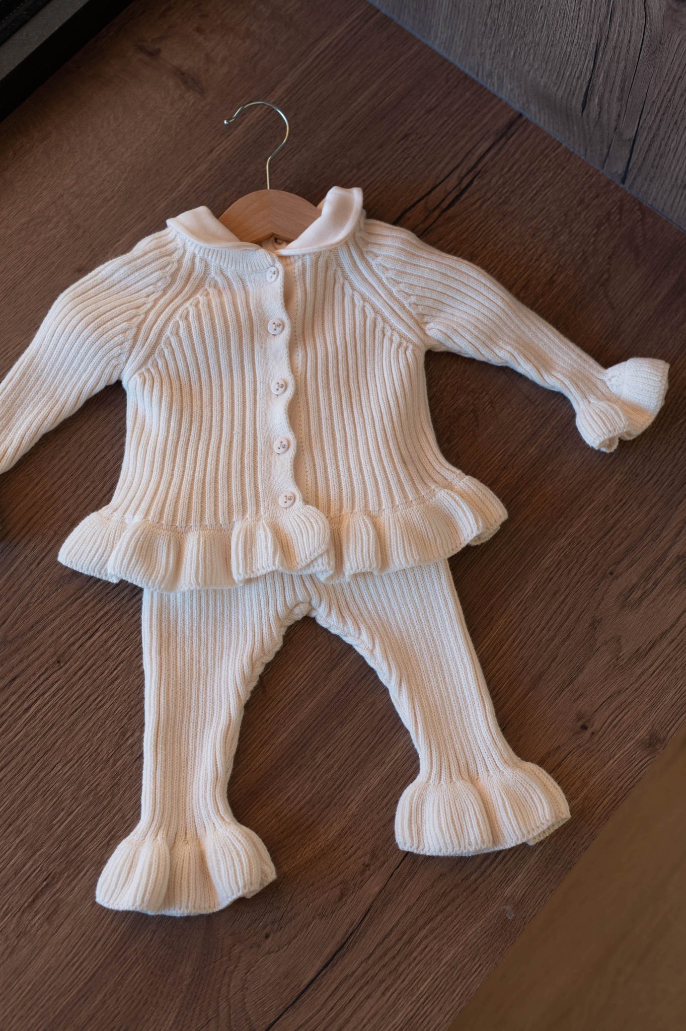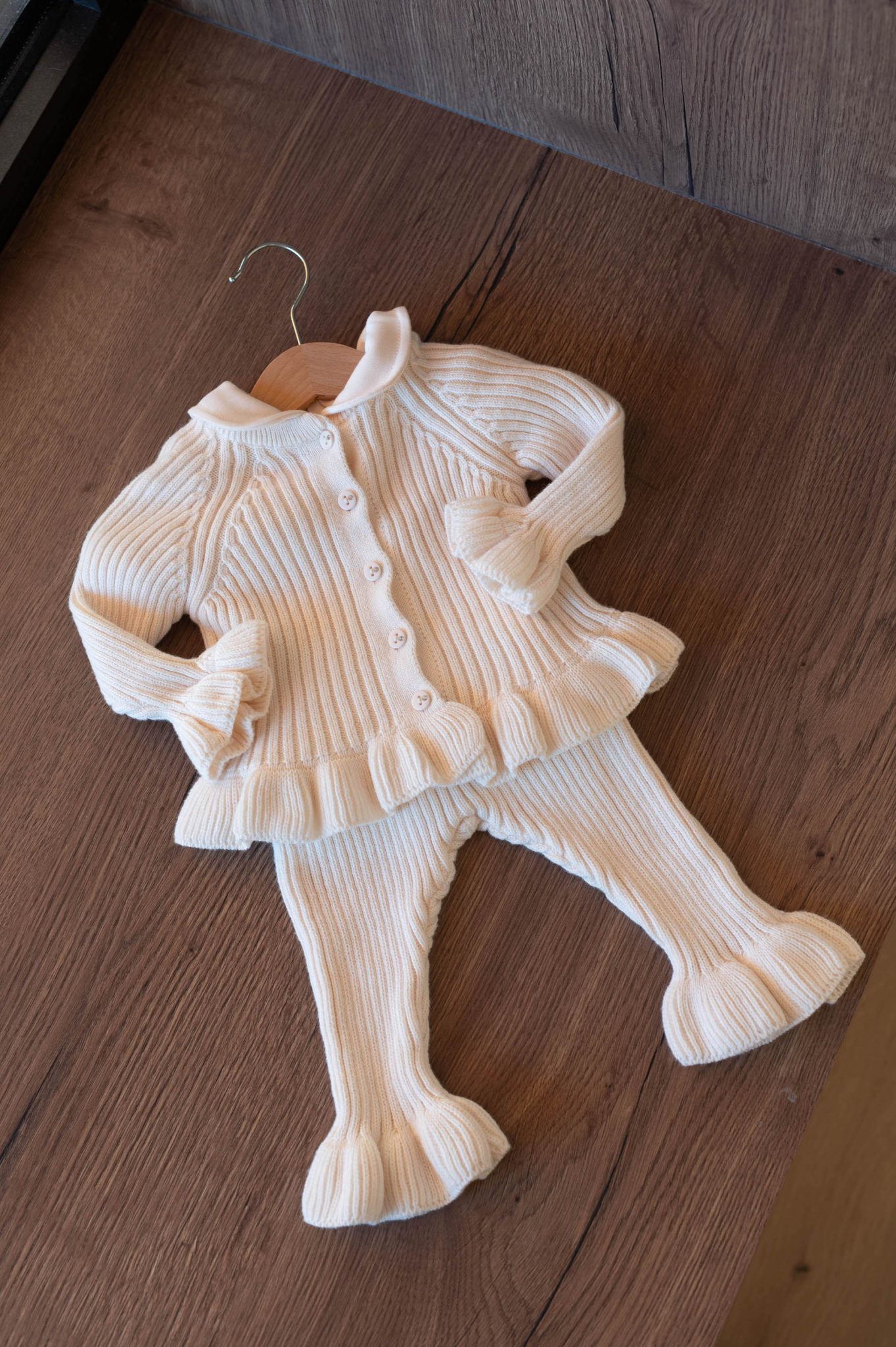 – Détail de volants sur le gilet et le pantalon