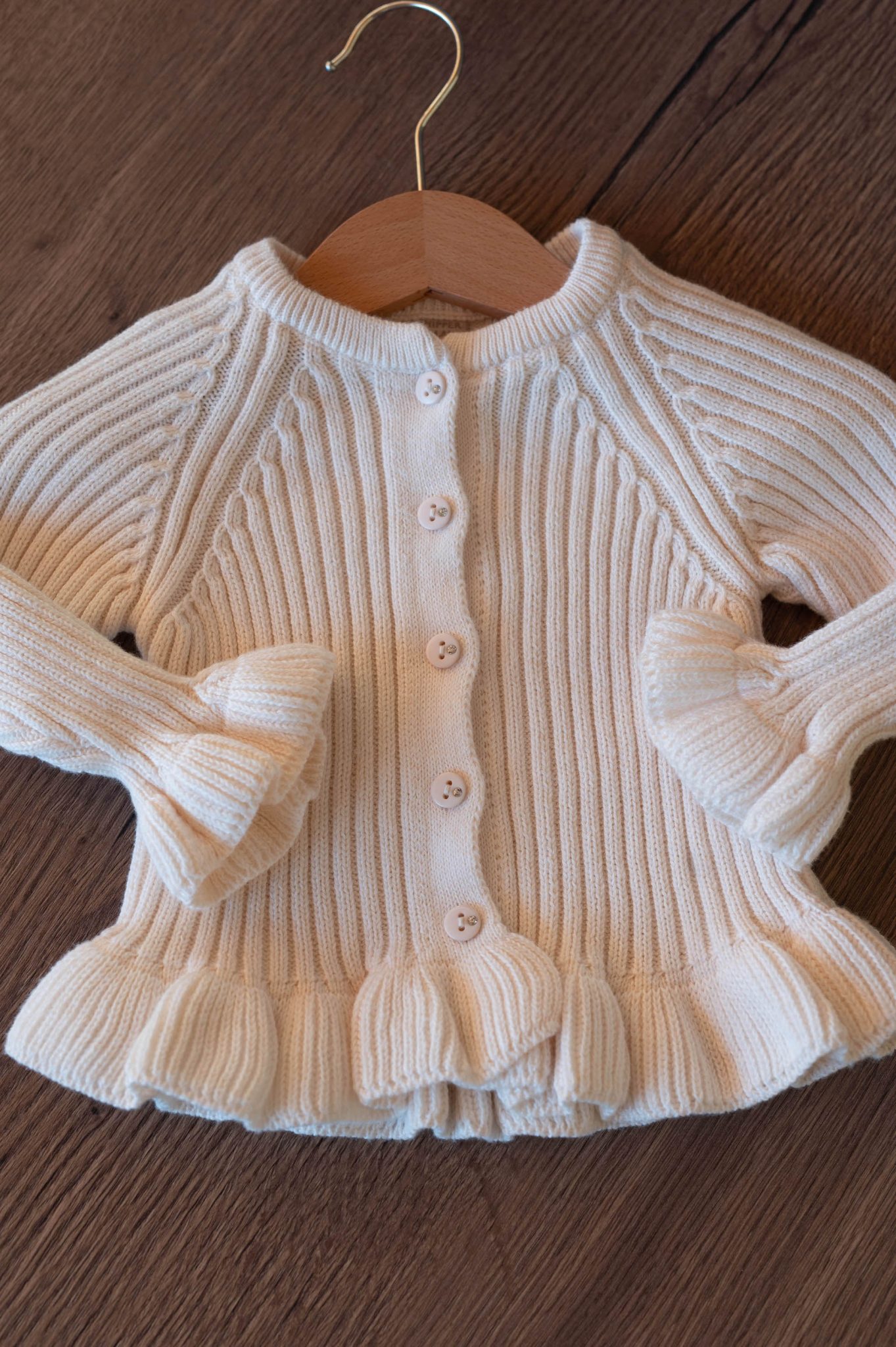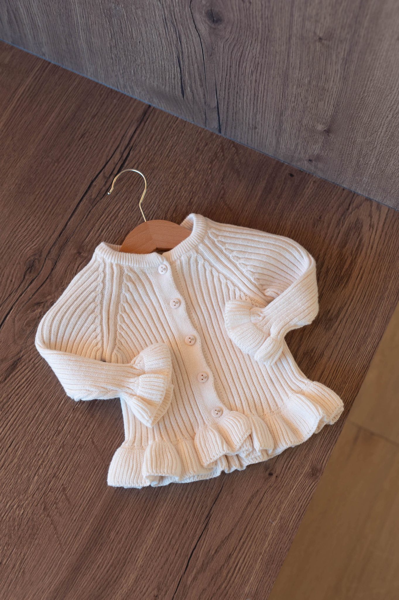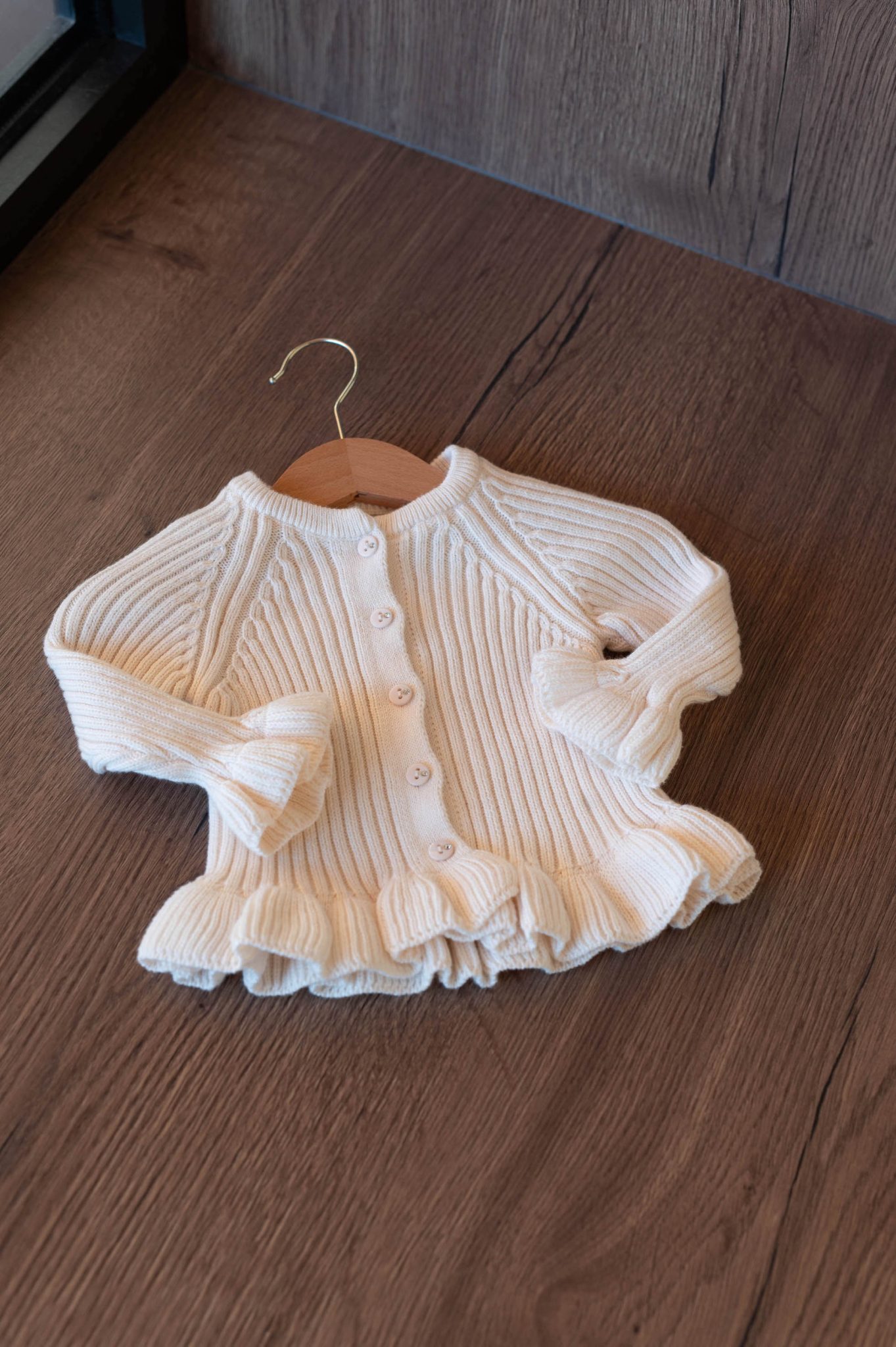 – Détail de volants sur le gilet et le pantalon
