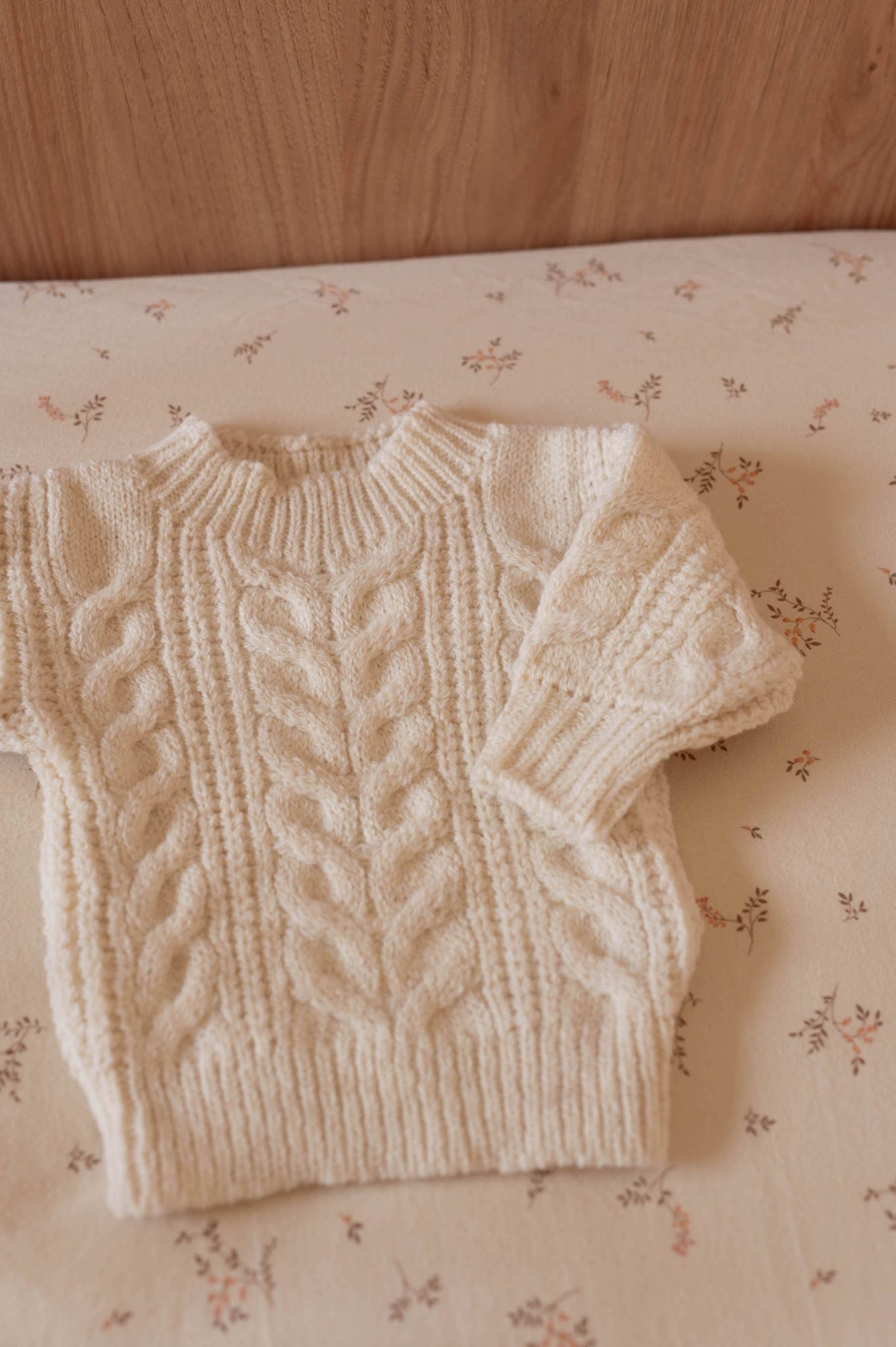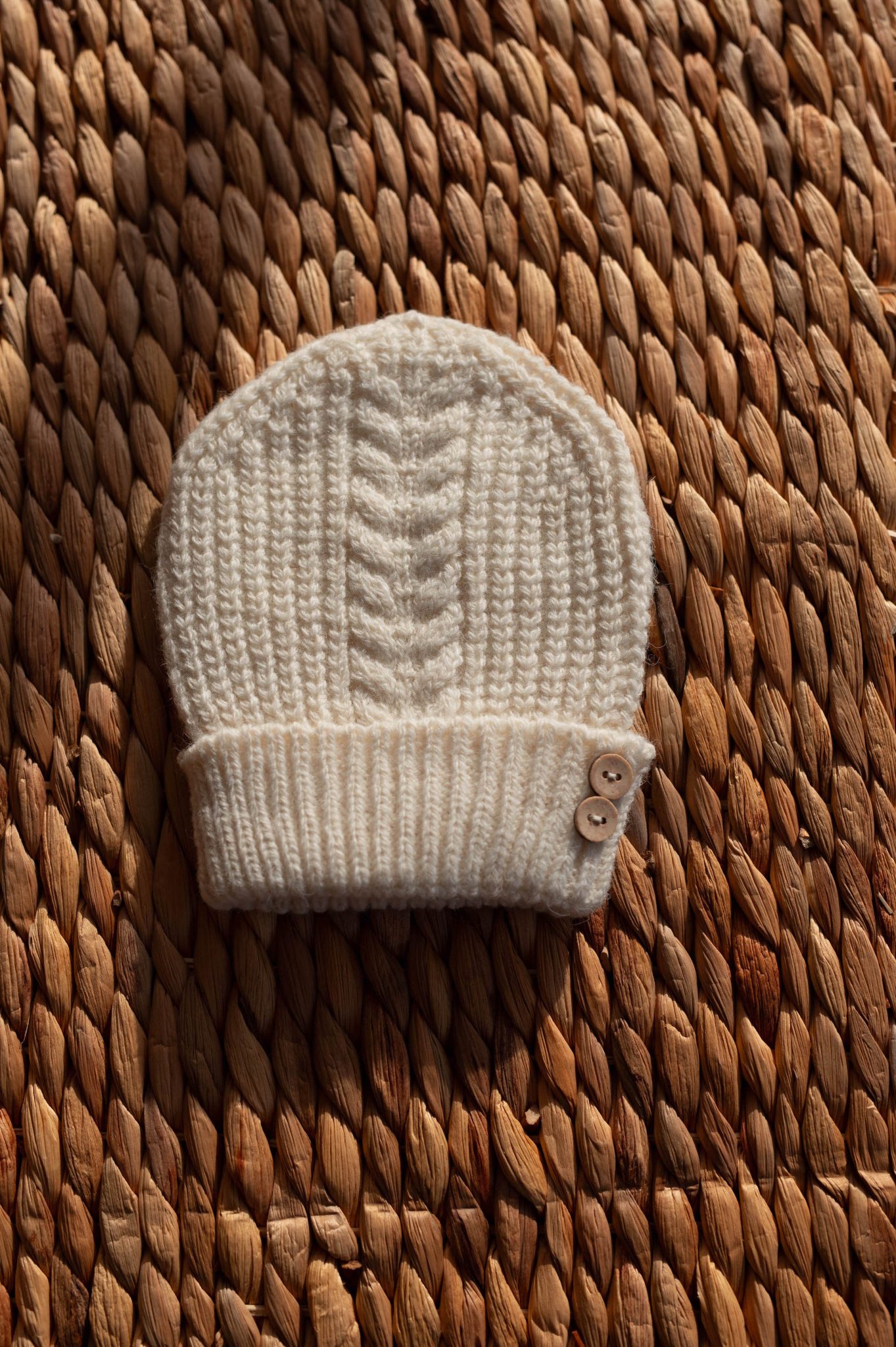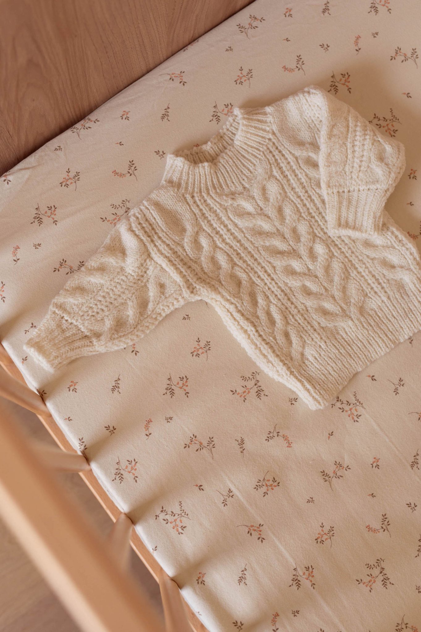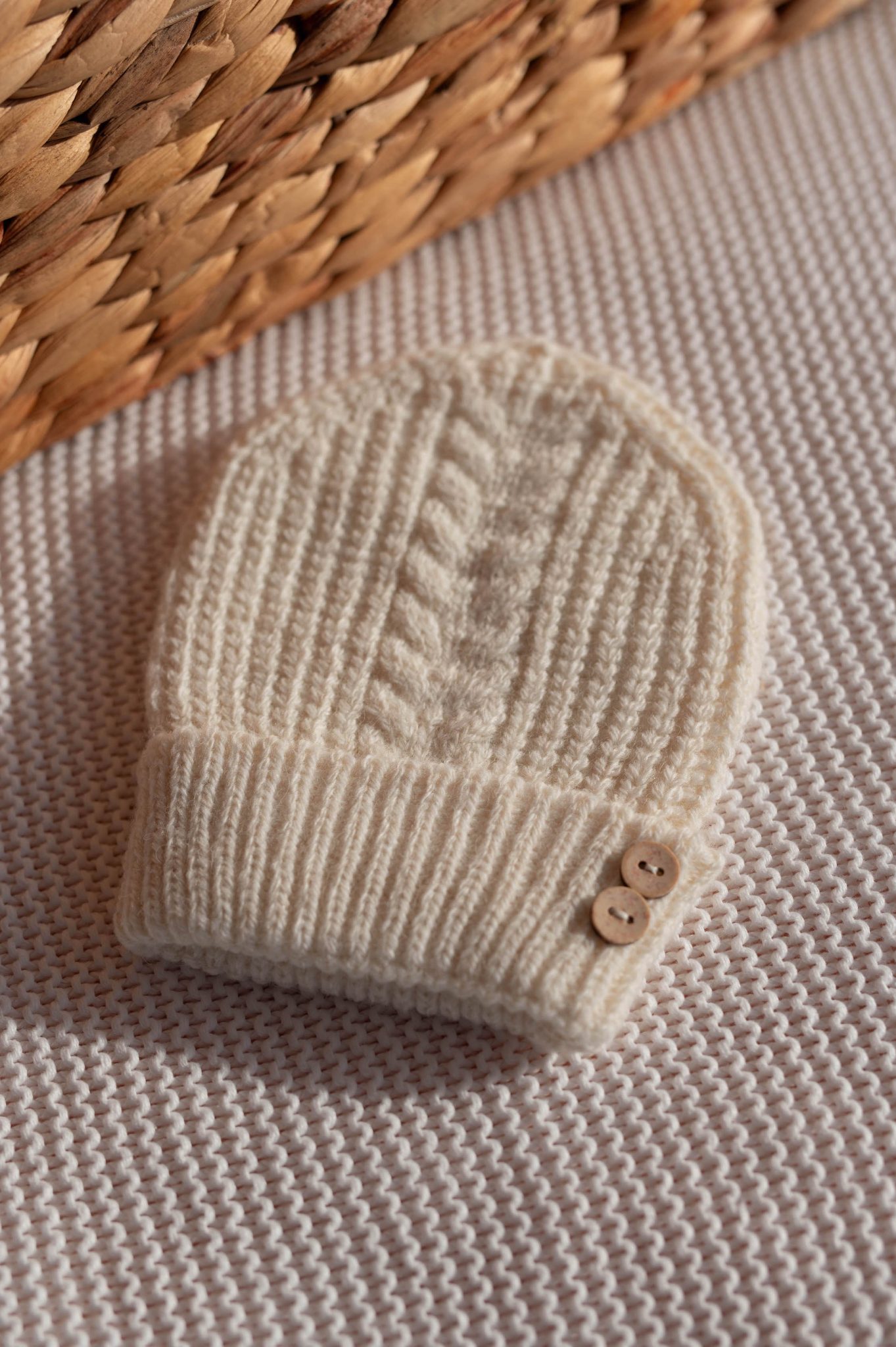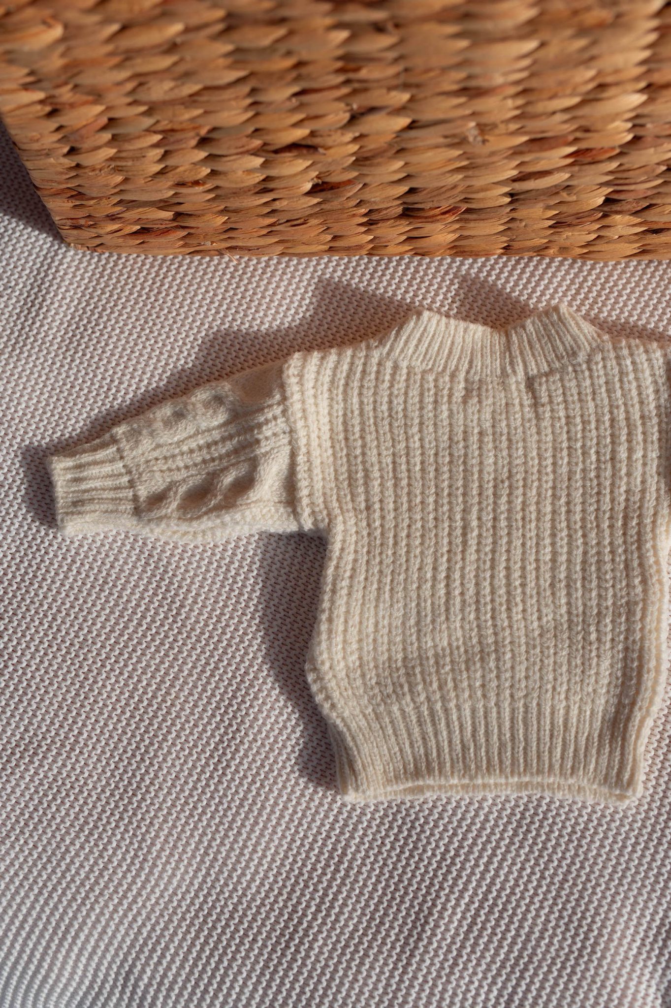– Pull et bonnet en maille torsadée