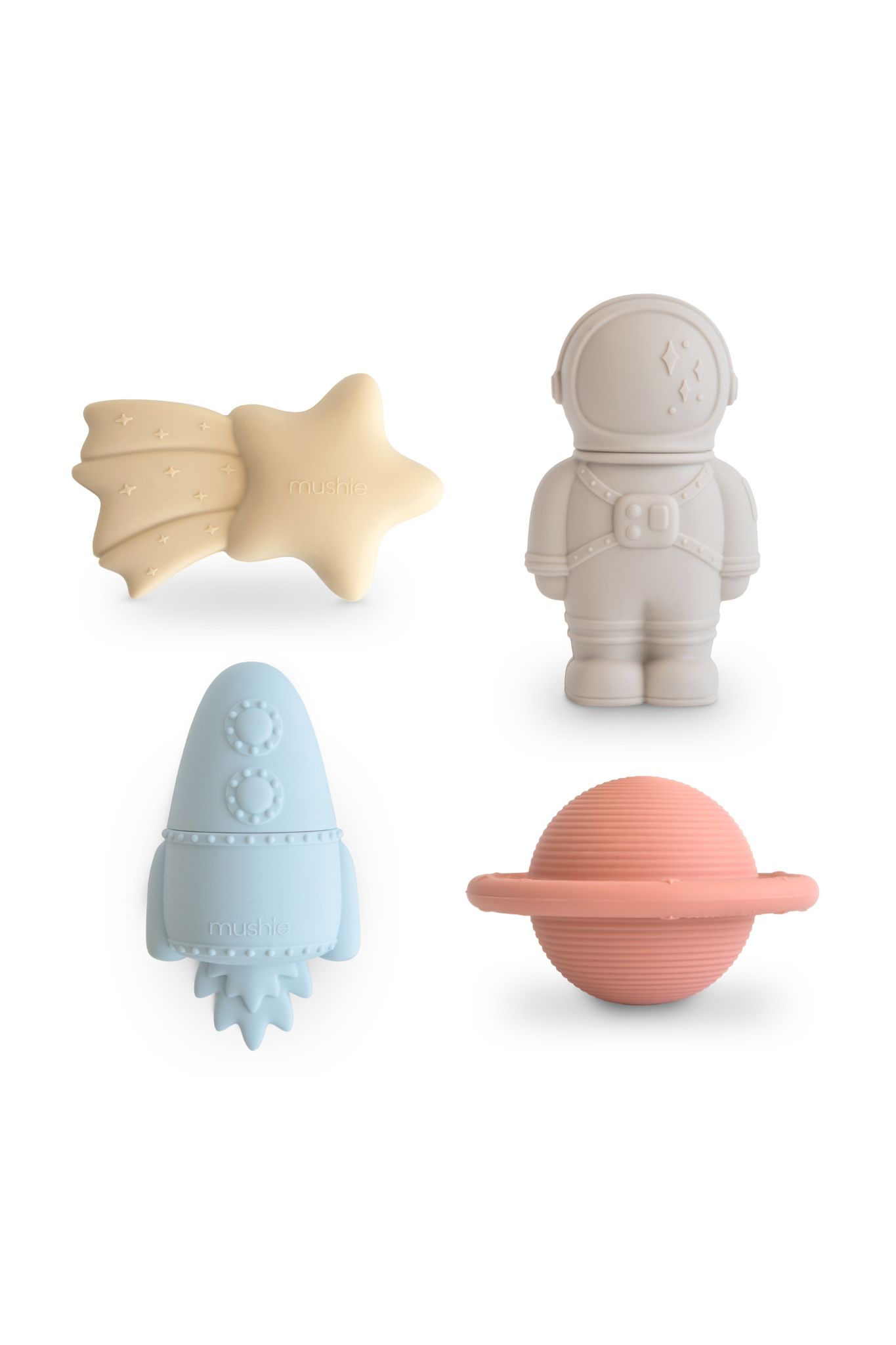 – Lot de 4 jouets de bain: étoile filante, planète, astronaute, fusée