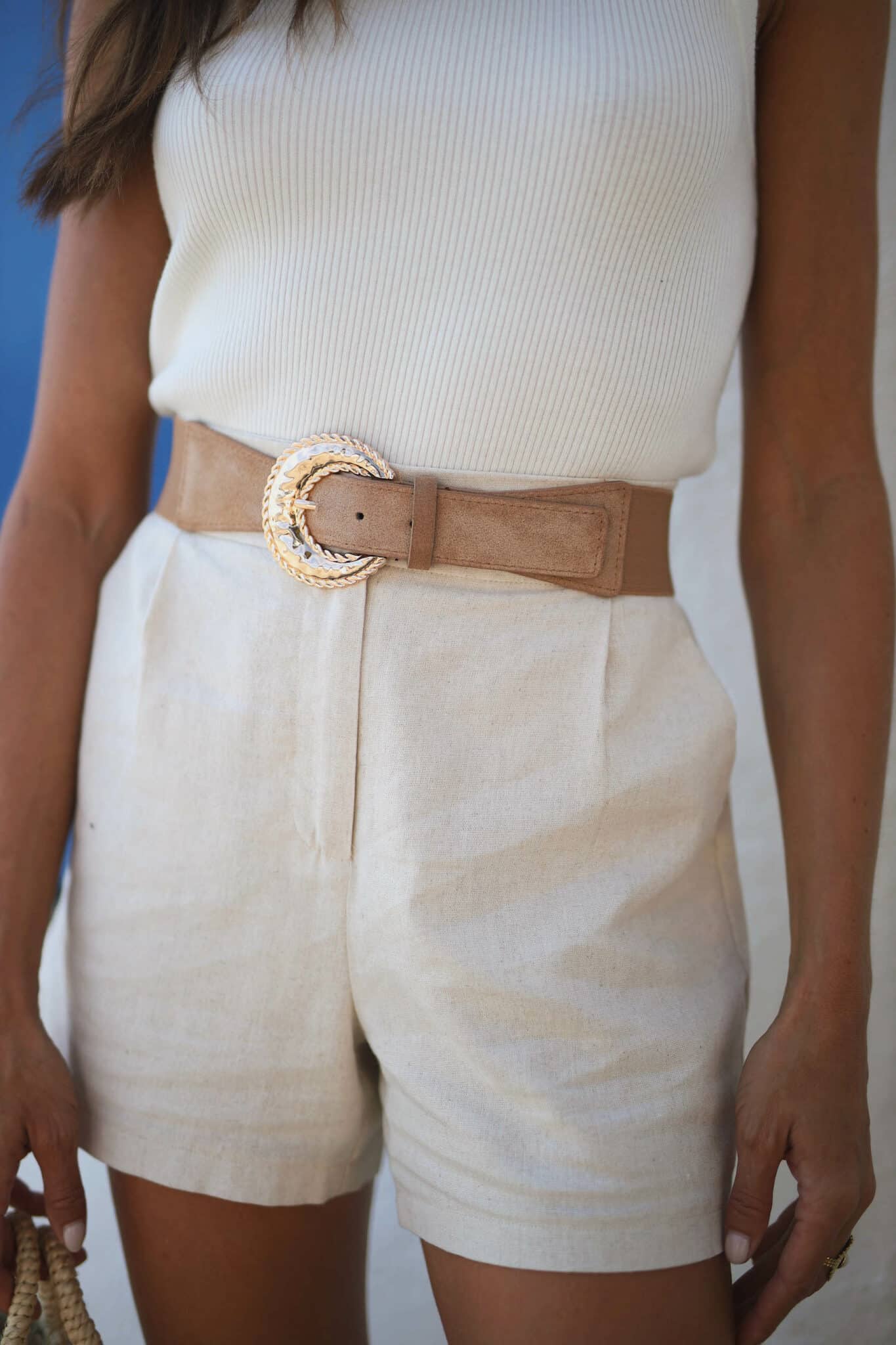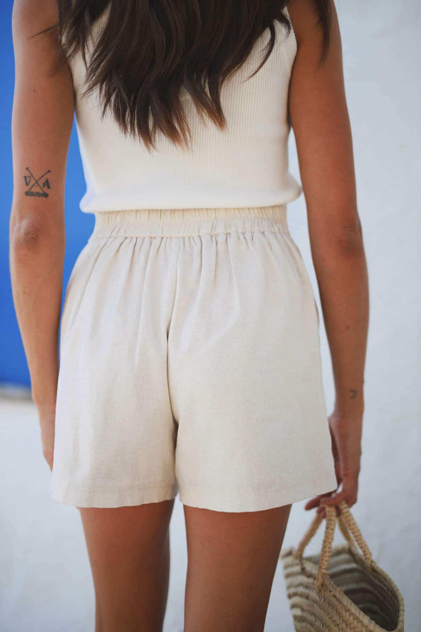 – Short en lin taille haute