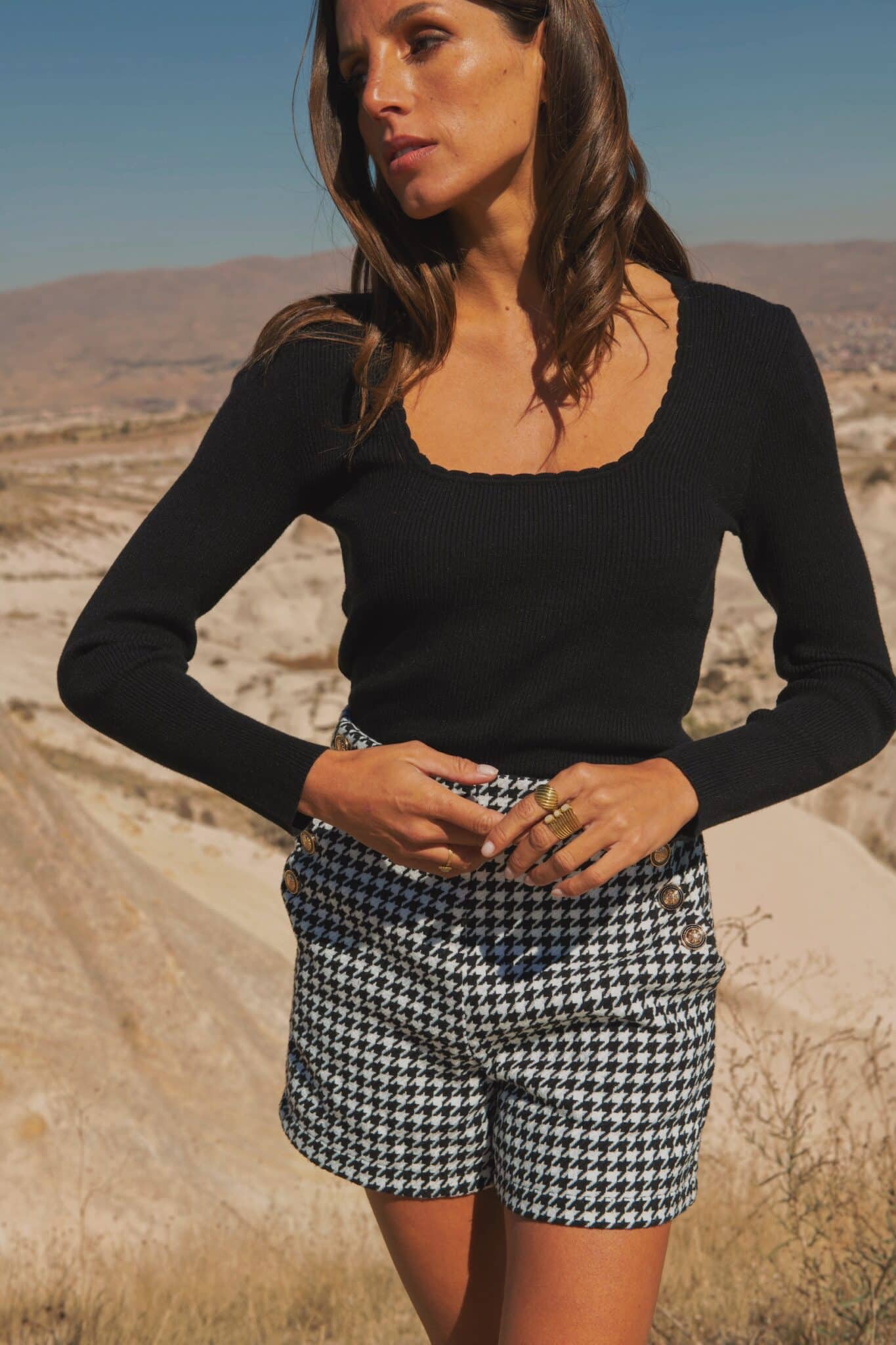 Le mannequin mesure 1m70 et porte une taille SM
